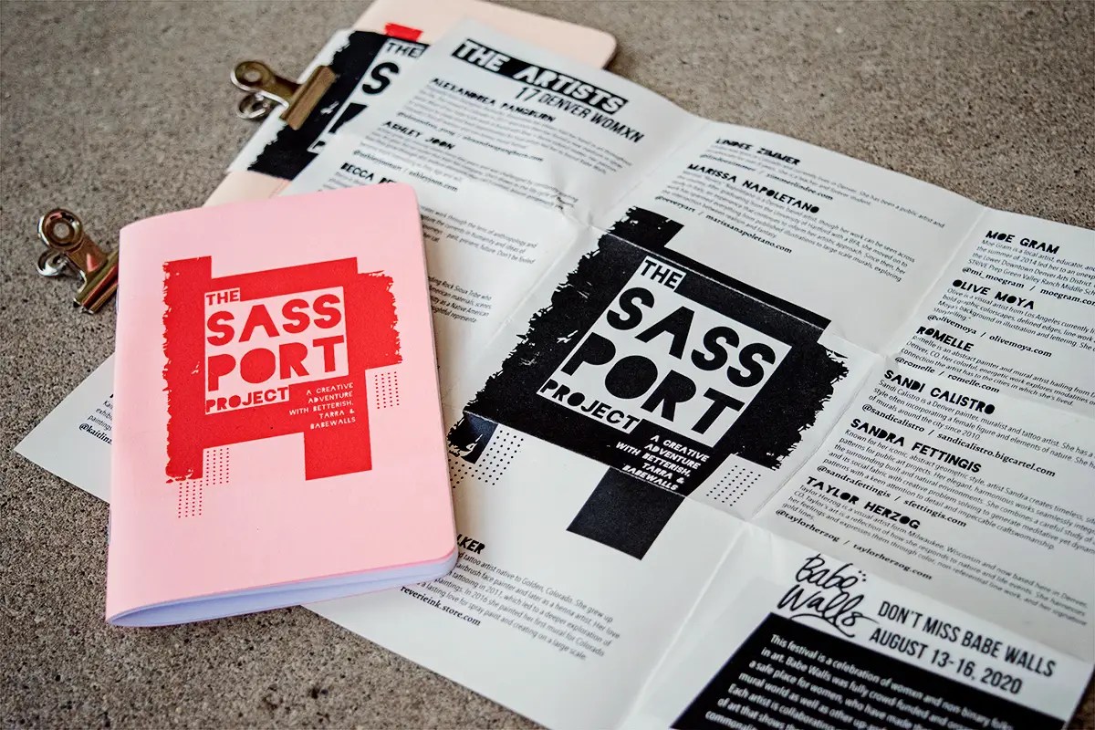 A creative adventure – The Sassport Project offers participants to collect a set of custom-made stamps made by 17 local artists in a souvenir passport notebook. The artists — all of which are womxn — represent Babe Walls, Colorado’s first all womxn and non-binary mural festival.